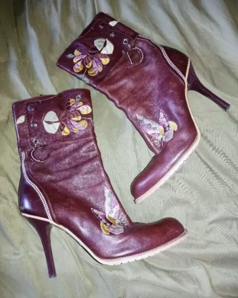 Hermosos botines CHRISTIAN DIOR) de TACÓN BORDADOS PIEL MarrónSe usaron dos veces. Un pie tiene la C y del otro la D como se muestra en fotos.Talla 5 - 5 1/2 Piel - Color vino♡♡♡ Envío todos los días de lunes a sábado ♡♡♡♡♡♡ Resuelve todas tus dudas antes de comprar ♡♡♡