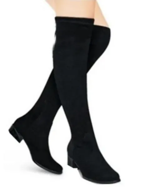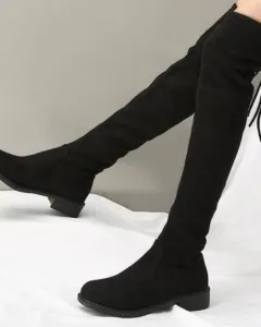 Maxibota #24. Bota alta de piso, llega arriba de la rodilla es color negro y trae agujetas para ajustarse, el material es de gamuza