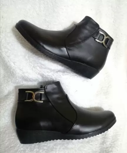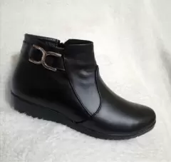 Hermoso botín de piel color negro de tacón corrido, diseño con adorno de broche metálico y con cierre para fácil poner. Suela ligera cómoda. México Número #25cm. Visita mi clóset para mas modelos y numeración. Descuento adicional -$100 usa mi Código Promocional si tu primera compra en la App: lucyrmxXqQJ9