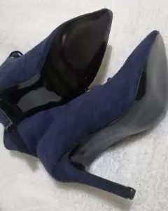 6 Botín azul agujetas. Hermoso botín de agujetas tacón de aguja 10cm color azul marino gamuza textura terciopelo de piel de durazno. Mexicano Número #26cm. Aplica mi código y tu primer compra en la App tiene descuento.