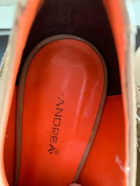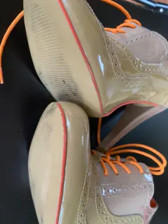 Botín combinado beige , camel con detalles naranja , marca Andrea, casi nuevos