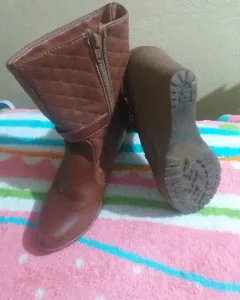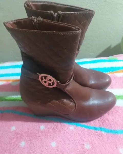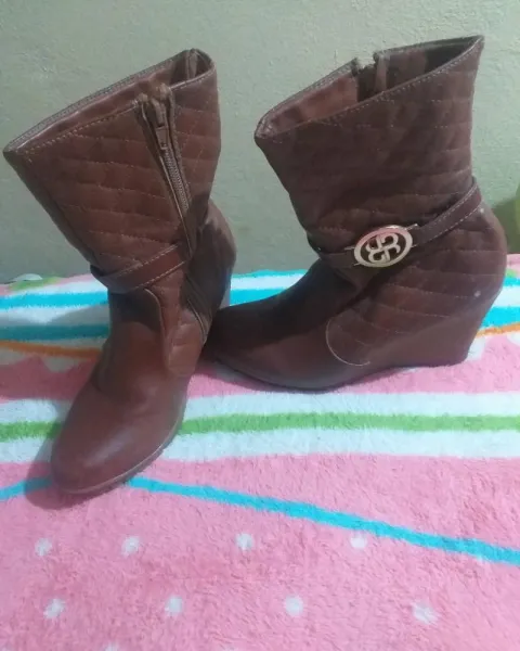 Botas. Botines de color café, solo tiene 3 a 4 puestas, el "tacon" es muy comodo, tiene pequeños " raspones" en la parte de enfrente con una pintada se les quita.