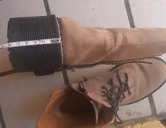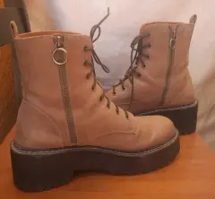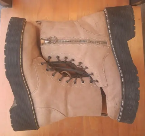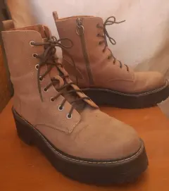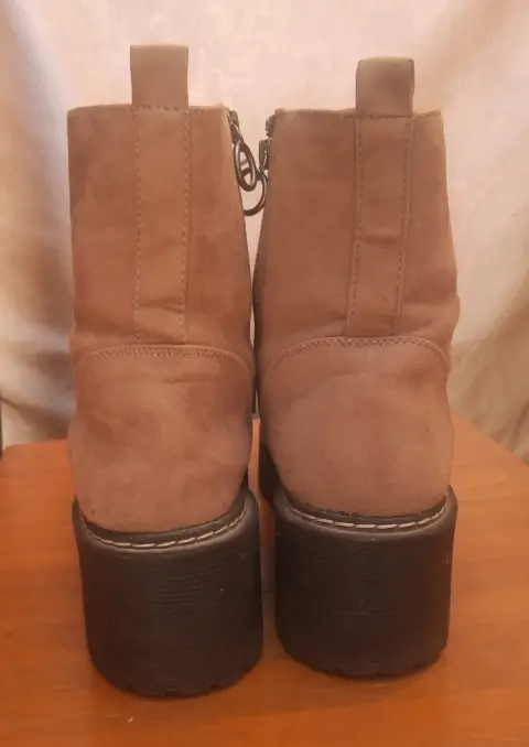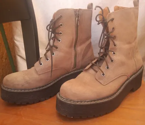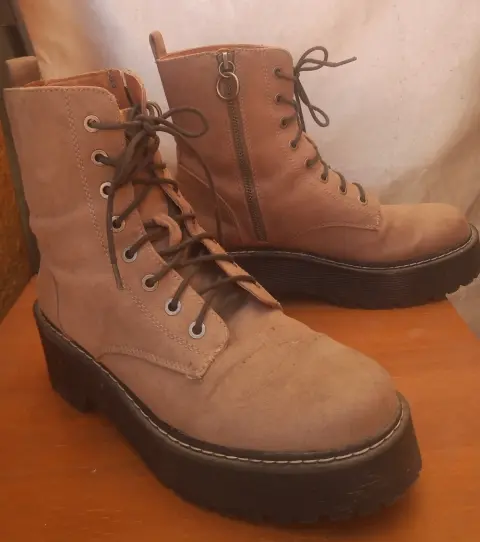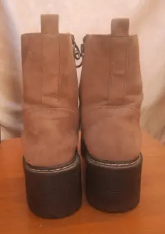 Botas café tipo gamuza plataforma. Excelentes botas color café claro, textura tipo gamuza, en material sintético de excelente calidad. Tienen suela alta tipo plataforma de 6 cm.