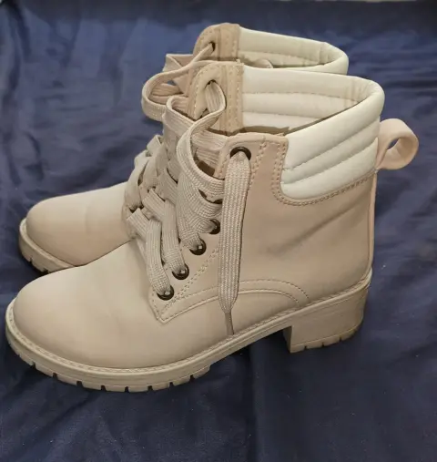 Botas con tacon. Bonitos botines en color palo de rosa con acolchonado en la parte de atrás, con agujetas para un mayor soporte.