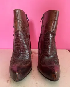 Botas cuadra swarovski. Botines cuadra piel lizard con incrustaciones de swarovski color cafe