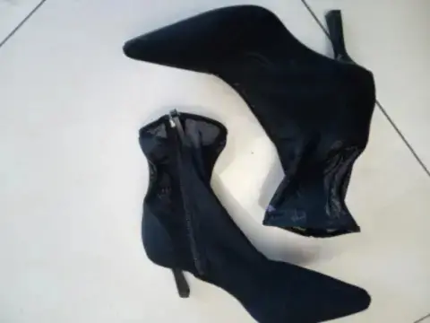 Botin. Botines con maya transparente negros #4 tacón de 7cm con cierre a los costados