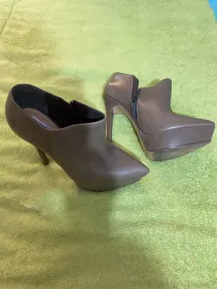 Botín marca Andrea del número 3 y altura de tacón de 14 cm tiene un color entre cafe claro y gris