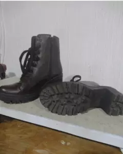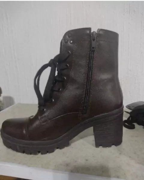 Bota de piel cafe obscuro con agujeta. Tacon ancho . Muy comoda