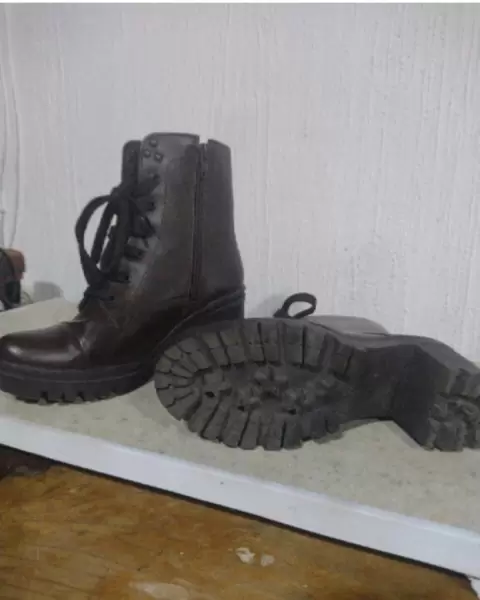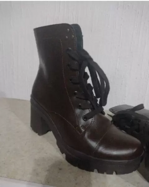 Botin café de agujeta. Bota de piel cafe obscuro con agujeta. Tacon ancho . Muy comoda