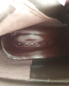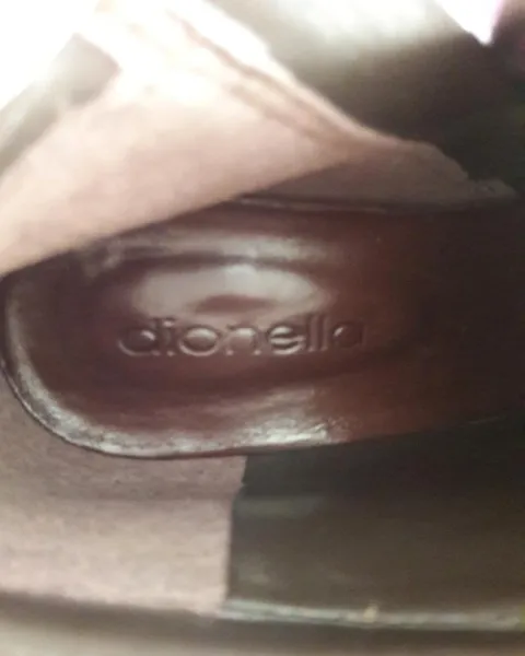 Botin de piel marca dionella, color cafe, tacon de aguja, talla 4.Están super padres! Animate!!