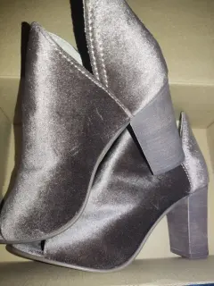 Hermoso botín tipo terciopelo en color café, número 5.5 de la marca Steve Madden, quedan para pie delgado ya que el empeine viene ajustado, por eso a mi no me quedaron, el tacón mide 8 centímetros. NUEVOS.Envíos de lunes a sábado.