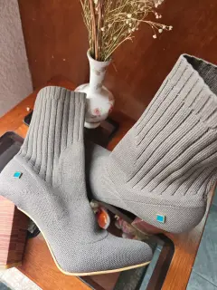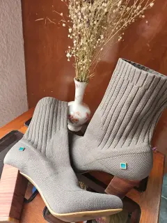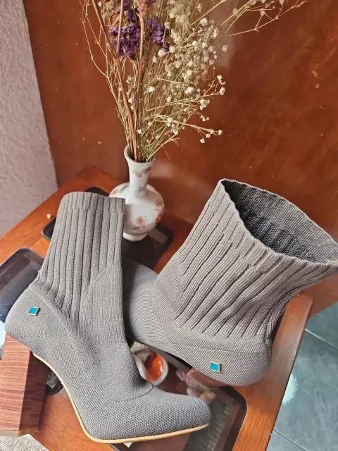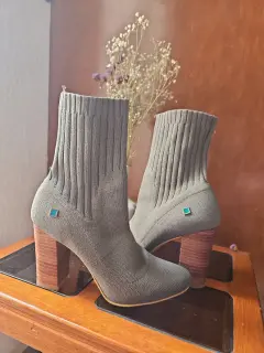 NUDE es su color, par de botines elegantes, tacón ancho y cómodo. Estilo excesivo buen gusto