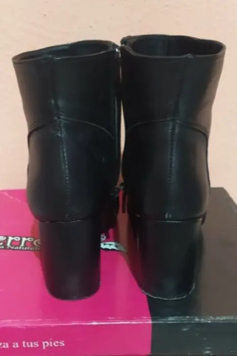 Botines negros con agujetas.Altura de tacón 7cm.Suela 1.2cmSin ningún detalle, una sola puesta.