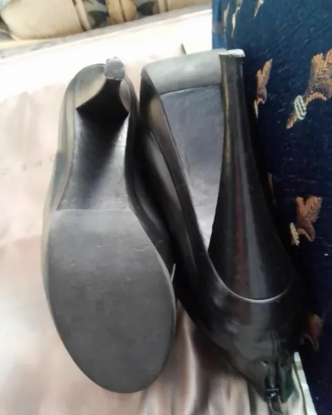 Botin color negro, marca Pura López, son de piel, tiene un detalle pequeño en el tacón izquierdo en la parte de abajo, agrego foto. Se super padres con faldas cortas y mezclilla!!