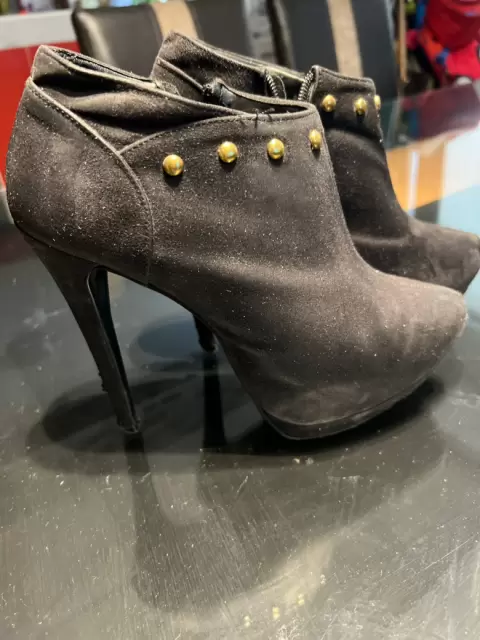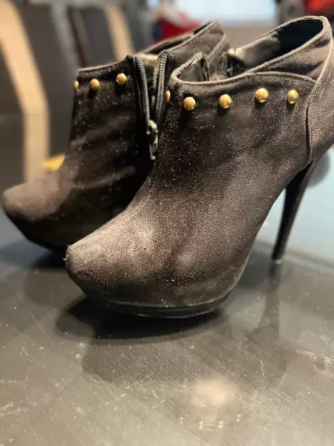 Bonito botín negro, textura gamuza, talla 25, altura 14 cm, muy cómodos, en buen estado.