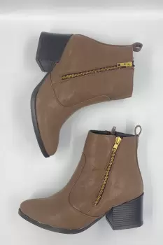 BOTIN PARA DAMA. ¡Originalidad y estilo para tu atuendo! Con estos botines casuales consigues un look que te hace ver genial. Se trata de un par en color café, muy sencillo de combinar con tu guardarropa actual.Poseen un ajuste de cierre a los costados, su corte y forro están elaborados en material textil, que te otorgan comodidad en todo momento.