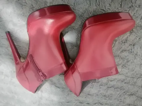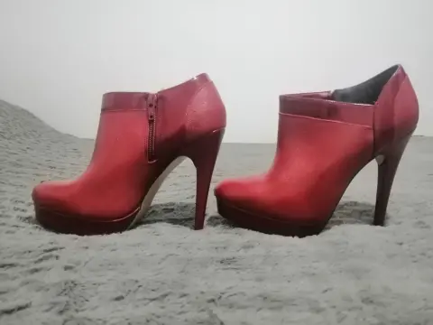 Botines color vino con detalles en charol del mismo tono, solo tienen una puesta, están muy lindos.