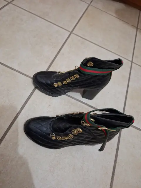 Botines. Botines en color negro con ganchos para agujetas, se entrega sin agujetas, piel sintética, tacón de 9cm. Talla 5