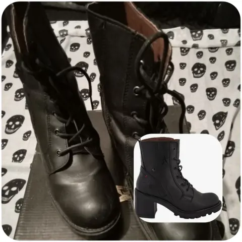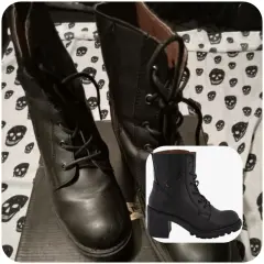 Botines en color negro , con agujetas y tacón del #7, con decoración de estrella .