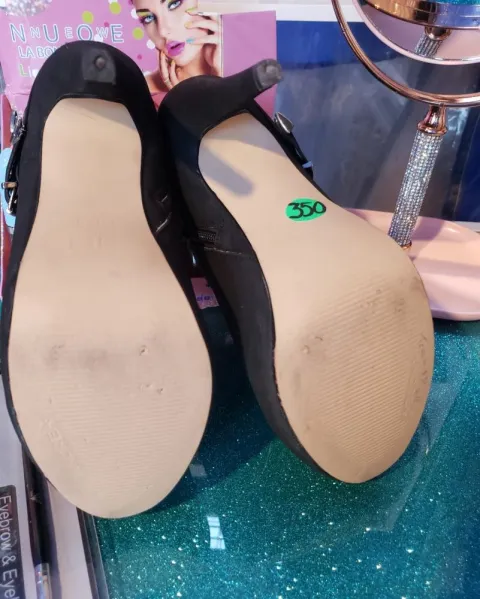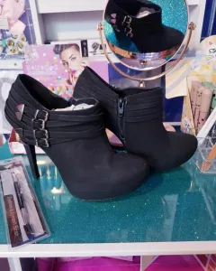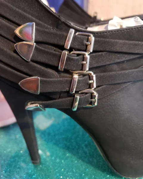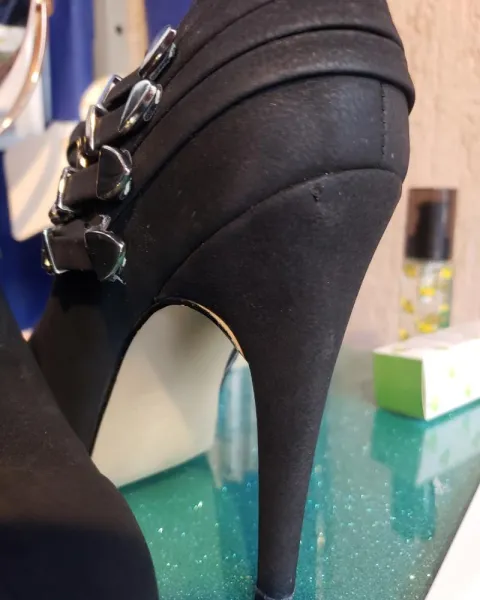 Botín Negro Talla 5 Con detalles plateados Altura de tacón 12 cm seminuevos con pequeño detalle en tacón