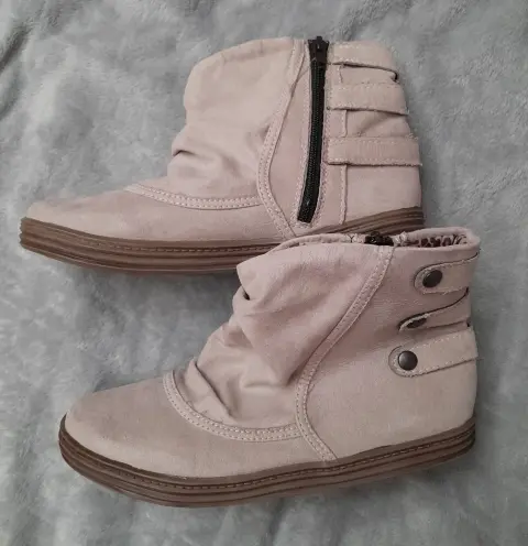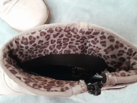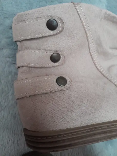 Botines beige 24 con cierre. Hermosos botines color beige, con cierre a los lados y adornos con tiras, animal print por dentro, usado una vez, sin más detalles de uso, dice 24.5 pero quedan mejor a un 24, la horma es pequeña.