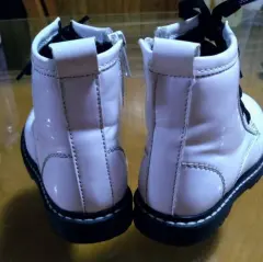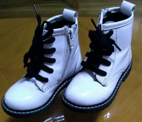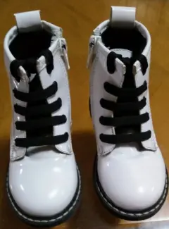 Botines blancos. Botines de niña de charol con cierre y agujetas número 15 sin detalles