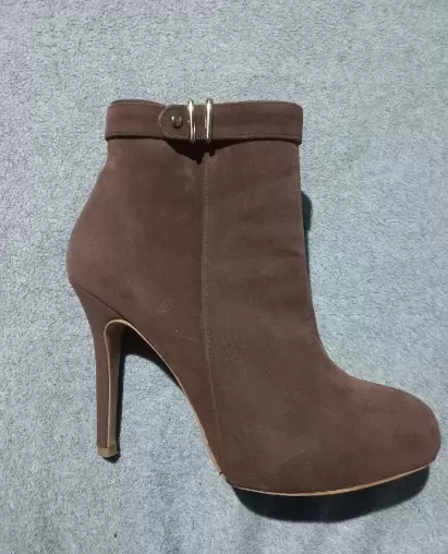 Botines cafe. Hermosos botines tipo ante, super comodos, sin detalles muy bien cuidados.Tacon 11.5cm plataforma interna 1.5cm
