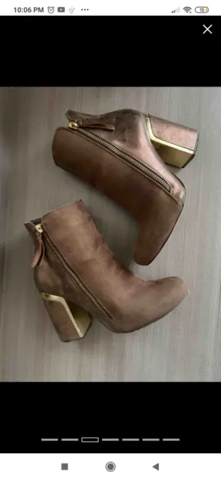 Descripción:Están hermosas, se ven genial con prendas formales, tiene ya sus detalles en la parte del tacón pero aun se conservan bien, el color se ve café pero tiene un tono como verde olivo dorado