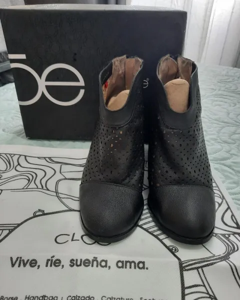 Botines cloe. Talla 26 color negro poco uso lo puedes ver en las tapas y suela punta lisa y lo demás calado tacon muy comodo