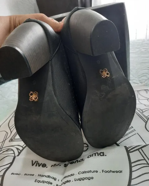 Talla 26 color negro poco uso lo puedes ver en las tapas y suela punta lisa y lo demás calado tacon muy comodo