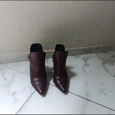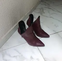 Botines color vino. Aberturas a los laterales que hacen estilizar las piernas. Tacón de aguja y terminados en punta. Lucen bien con mezclilla, mallas o vestido. Muy cómodos.