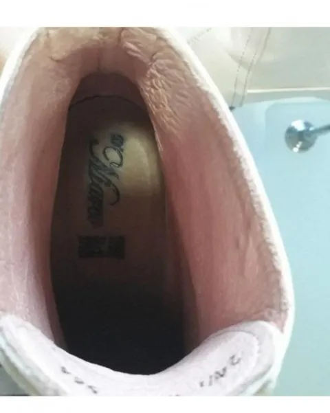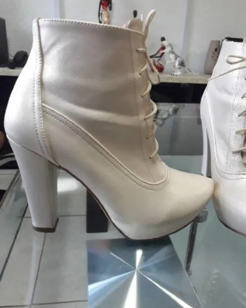 Botines en color Hueso,100% Piel No.4.5Con plataforma por dentro, eso las hace súper comodas.Yo soy 4, y me quedan bien!LA USE SOLO UNA VEZ.