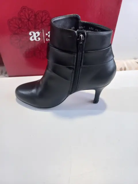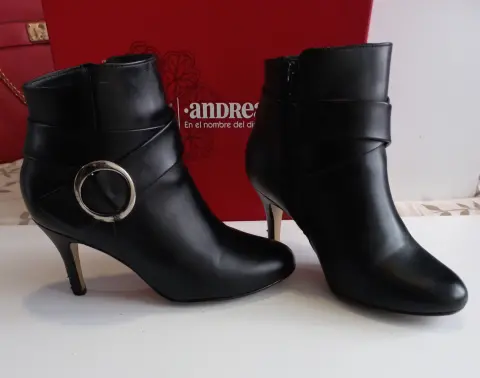 Preciosos Botines negros con detalles de cinturones cruzados y hebilla plateada, punta redondeada lo que los hace muy cómodos, don Talla: 5 , Tacón 8cm.