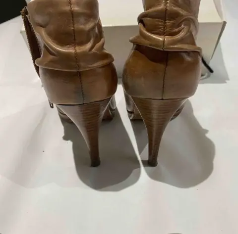 Reestrena. Hermosos botines, muy combinables con short , falda, jeans, vestidos y hasta pantalones. Son de piel por fuera y cuero por dentro, evita que se descarapelen. Tiene detalles en el talón cómo se muestra en la última foto. Son color camel. Tacón 9 cm. Se usaron poco.PRECIO ESPECIAL POR ARMAR TU OUTFIT EN MI CLOT