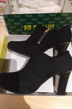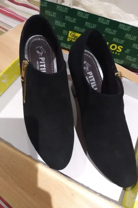Botines de ante negros marca Pitillos. Bonitos y cómodos botines prácticamente nuevos marca PitillosNúmero 3.5 (36 EUR)Excelentes condiciones, sin detalles, en su caja original.Altura del tacón 8cm