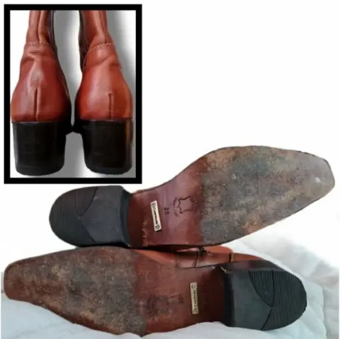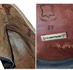 Botines Choppard de cuero genuinoEstética de 9.0numero 25 mx.Desgaste normal de la bota y mínimos detalles de manchas por dentro del mismo producto para limpiar cuero (Ver últimas Fotos).Color Miel/ café