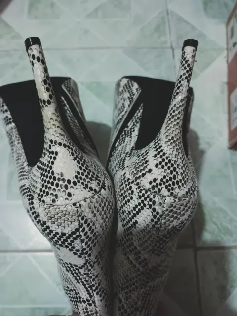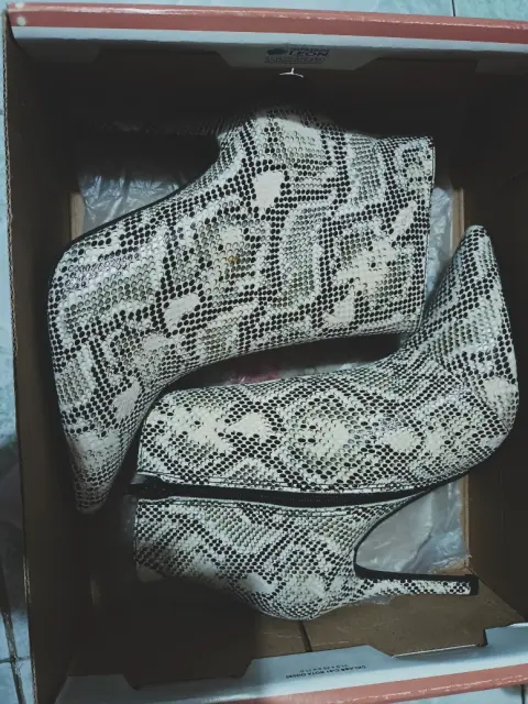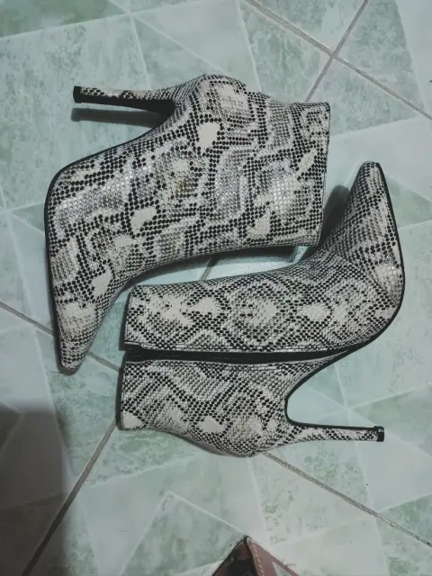Botines estampado de víbora. Marca Andrea, nuevos, nunca se usaron. Son del número 24 y en tacón mide 8 cm muy comodo.