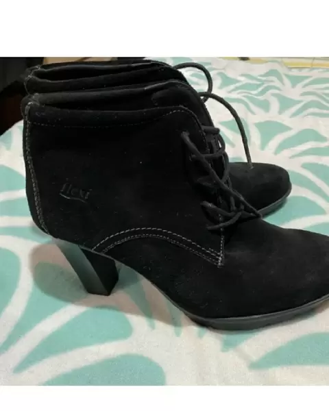 Botines Flexi tipo gamuza con cintas, de tacón grueso muy cómodo y poquita plataforma que los hace aún más cómodos.Dice 5.5 pero vienen amplios, podrían quedar a #6