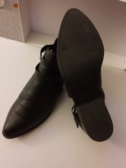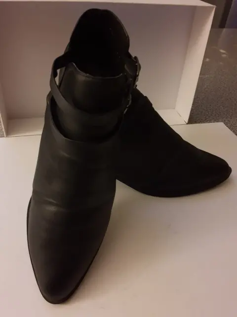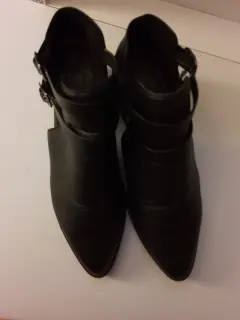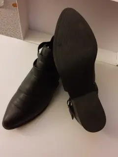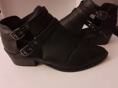 Botines Negros Cowboy. Estos botines estilo Cowboy de la marca Tierra Bendita de Price Shoes, son los indicados para cualquier outfit. Son talla 27 MX/ 10 US y su estado tal como se muestra es usado, la verdad tuvo sus buenos momentos; la parte exterior es de piel con algunas arrugas y la plantilla es sintético. El tacón ronda los 2 a 2.5 cm, y las cintas cuentan con un pequeño resorte; aún le quedan años de vida