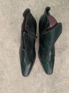 Botines negros de piel. Son de piel, tacón cuadrado, puntiagudas, suela sintética, del número 4