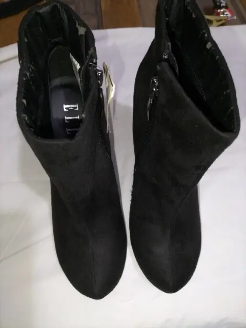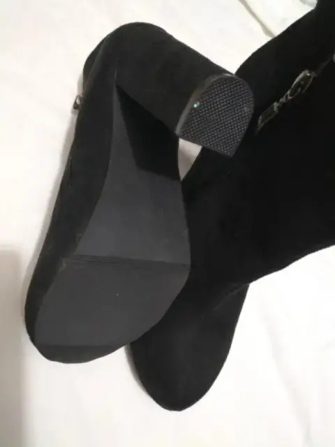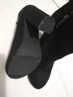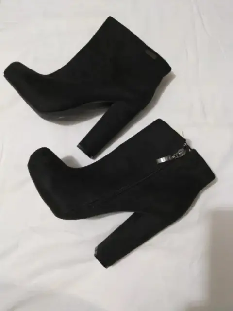 Botines negros gamuza con cierre alos lados ,12.5 de altura de tacón ancho del tacón 3 cm marca Elle con etiqueta se dañó un poco la parte de adentro se descarapelo x estar aguardado pero no es visible al ponerte