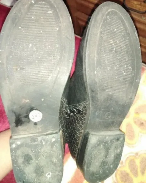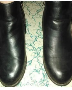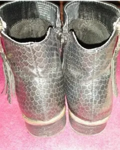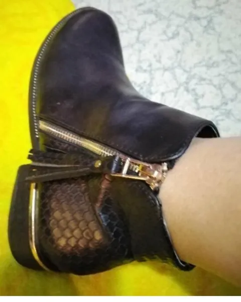 Botines negros con tiritas doradas en talones son de talla 24 cm estan muy suaves ,comodos con flequillos en sus cierres