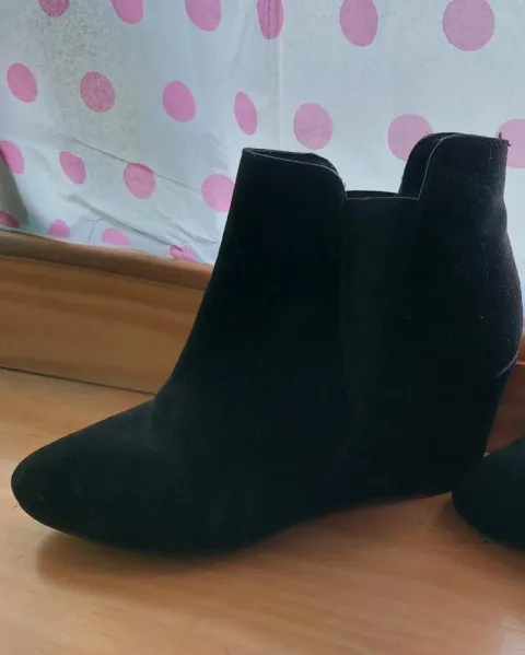 Bonitos botines de gamuza en excelente estado,color negro, talla 4 ,tacon corrido muy cómodas.