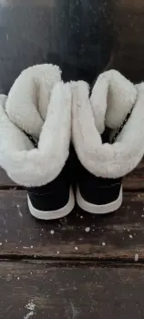 Botines para frio con peluche. Botines antiderrapante son calientitas , por dentro tienen peluche, súper suavecitas y cómodas, con agujeta , nuevas , detalles: solo un poco sucias del peluche blanco pero se quitaes solo polvo (estuvieron guardadas) NUEVAS , se compraron en Shopee