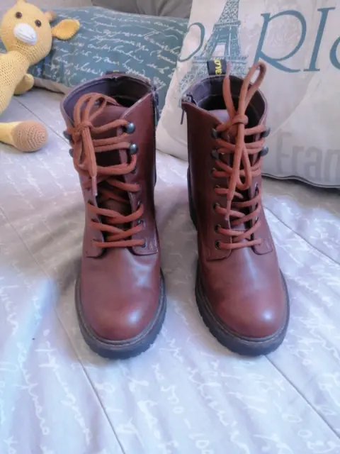 Botines polo. Botines polo color café con agujeta solo tienen una puesta no tienen detalles número 5