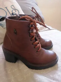 Botines polo color café con agujeta solo tienen una puesta no tienen detalles número 5