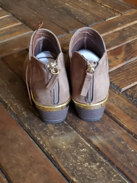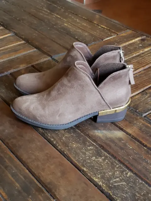 Bonitos botines en color topo, de corte sintético efecto gamuza, de suela sintética con tacón de 6cm*Talla 3 pero pueden quedar tambien a 3.5 porque no hay medios en este modelo* Sin detalles son nuevos*Calificación:10*PRECIO FIJO NO OFERTAR*