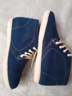 Botines tipo ante azul marino 22. Lindos botines tipo ante, color azul marino, agujetas en contraste, talla 22, nuevos, sin detalles.