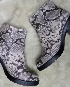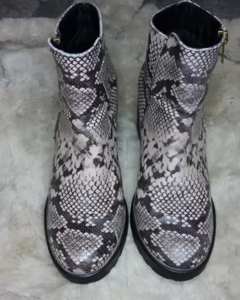 Botines de plataformaSimulando piel de víboraSin ningún detalleCierre en el costado.¡Súper comodas!Vienen fiel a su talla.