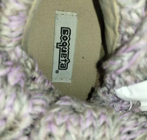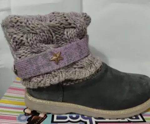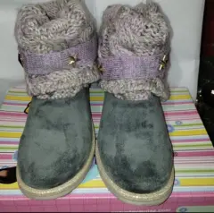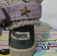 Bonitas botas de niña talla 21, la parte de abajo es de gamuza y arriba es tejido grueso en tonos morados.